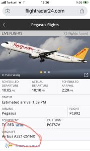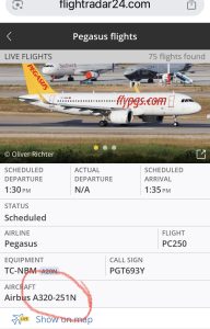 Pegasus’un bu seferleri “Uçak izleme platformu” flightradar24.com ’un canlı takip sistemine de yansıdı.